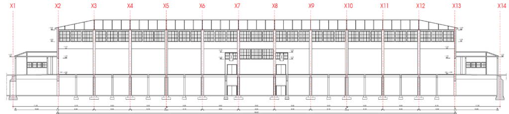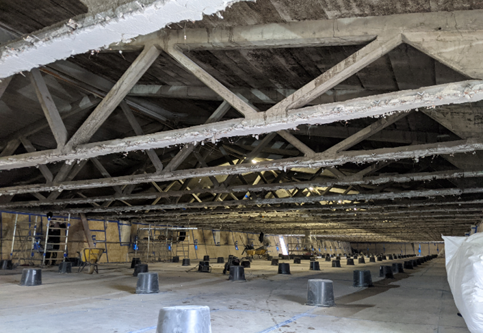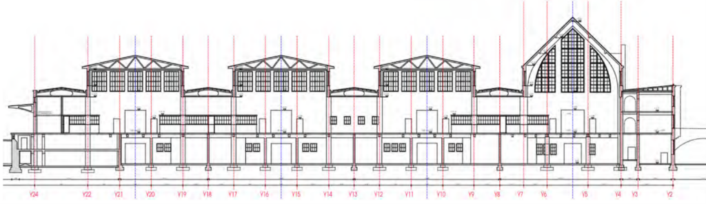 Die Maßnahme umfasst die Nachrechnung, Instandsetzung und statische Ertüchtigung des Dachtragwerks der ca. 97 m langen Hallen 2 bis 4 im laufenden Betrieb. Hierzu werden die Dächer nacheinander komplett mit einem Wetterschutzgerüst überdeckt. Die Verkaufsflächen im Halleninneren werden durch ein vollflächiges Raumgerüst vom Baubereich abgetrennt.